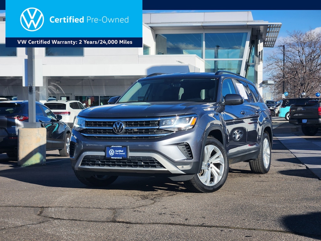 Trailer Hitch Extras, Atlas 3.6L V6 SE w/Technology, Volkswagen Certified Pre-Owned Certified, 4D Sport Utility, 3.6L VR6, 8-Speed Automatic with Tiptronic, AWD, Platinum Gray Metallic, Titan Black w/Perforated V-Tex Leatherette Seating Surfaces, 3rd row seats: split-bench, Auto-dimming Rear-View mirror, Heated Comfort Front Bucket Seats, Rain sensing wipers, 3.60 Axle Ratio, 4-Wheel Disc Brakes, 6 Speakers, ABS brakes, Air Conditioning, Alloy wheels, AM/FM radio: SiriusXM with 360L, Automatic temperature control, Brake assist, Bumpers: body-color, Compass, Delay-off headlights, Driver door bin, Driver vanity mirror, Dual front impact airbags, Dual front side impact airbags, Electronic Stability Control, Emergency communication system, Exterior Parking Camera Rear, Four wheel independent suspension, Front anti-roll bar, Front Bucket Seats, Front Center Armrest, Front dual zone A/C, Front fog lights, Front reading lights, Fully automatic headlights, Heated door mirrors, Heated front seats, Illuminated entry, Leather Shift Knob, Low tire pressure warning, Occupant sensing airbag, Outside temperature display, Overhead airbag, Overhead console, Panic alarm, Passenger door bin, Passenger vanity mirror, Perforated V-Tex Leatherette Seating Surfaces, Power door mirrors, Power driver seat, Power Liftgate, Power steering, Power windows, Radio data system, Radio: MIB3 Composition Media w/8 Touchscreen, Rear air conditioning, Rear anti-roll bar, Rear reading lights, Rear seat center armrest, Rear window defroster, Rear window wiper, Remote keyless entry, Roof rack: rails only, Security system, Speed control, Speed-sensing steering, Split folding rear seat, Spoiler, Standard Suspension, Steering wheel mounted audio controls, Tachometer, Telescoping steering wheel, Tilt steering wheel, Traction control, Trip computer, Turn signal indicator mirrors, Variably intermittent wipers, and Wheels: 20 x 8J 5-Spoke Silver Painted Alloy. Odometer is 9032 miles below market average!