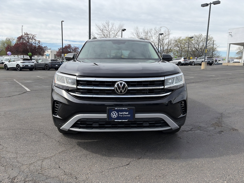 Black Wheel Package (Wheels: 20 x 8J 5-Spoke Black Painted Alloy), Atlas Protection Package- Bench Seat (Heavy Duty Trunk Liner w/VW CarGo Blocks, Luggage Net, and Rubber Mats Kit - Bench Seats), Atlas 3.6L V6 SE w/Technology, Volkswagen Certified Pre-Owned Certified, 4D Sport Utility, 3.6L VR6, 8-Speed Automatic with Tiptronic, AWD, Deep Black Pearl, Titan Black w/Perforated V-Tex Leatherette Seating Surfaces, Active Cruise Control, Heated Comfort Front Bucket Seats, 3.60 Axle Ratio, 3rd row seats: split-bench, 4-Wheel Disc Brakes, 6 Speakers, ABS brakes, Air Conditioning, Alloy wheels, AM/FM radio: SiriusXM with 360L, Auto-Dimming Rear-View Mirror, Auto-dimming Rear-View mirror, Automatic temperature control, Brake assist, Bumpers: body-color, Compass, Delay-off headlights, Driver door bin, Driver vanity mirror, Dual front impact airbags, Dual front side impact airbags, Electronic Stability Control, Emergency communication system: VW Car-Net Safe & Secure 5-year, Exterior Parking Camera Rear, Four wheel independent suspension, Front anti-roll bar, Front Bucket Seats, Front Center Armrest, Front dual zone A/C, Front fog lights, Front reading lights, Fully automatic headlights, Heated door mirrors, Heated front seats, Illuminated entry, Leather Shift Knob, Low tire pressure warning, Occupant sensing airbag, Outside temperature display, Overhead airbag, Overhead console, Panic alarm, Passenger door bin, Passenger vanity mirror, Perforated V-Tex Leatherette Seating Surfaces, Power door mirrors, Power driver seat, Power Liftgate, Power steering, Power windows, Radio data system, Radio: MIB3 Composition Media w/8 Touchscreen, Rain sensing wipers, Rear air conditioning, Rear anti-roll bar, Rear reading lights, Rear seat center armrest, Rear window defroster, Rear window wiper, Remote keyless entry, Roadside Assistance Kit, Security system, Speed control, Speed-sensing steering, Split folding rear seat, Spoiler, Standard Suspension, Steering wheel mounted audio controls, Tachometer, Telescoping steering wheel, Tilt steering wheel, Traction control, Trip computer, Turn signal indicator mirrors, Variably intermittent wipers, VW Care, and Wheels: 20 x 8J 5-Spoke Silver Painted Alloy. Recent Arrival!