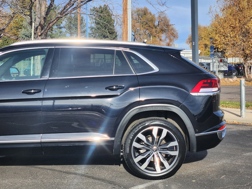 Trailer Hitch Extras, Atlas Cross Sport 3.6L V6 SEL Premium R-Line, Volkswagen Certified Pre-Owned Certified, 4D Sport Utility, 3.6L VR6, 8-Speed Automatic with Tiptronic, AWD, Deep Black Pearl, Cinnamon Brown/Titan Black w/Perforated Vienna Leather Seating Surfaces, Heated & Ventilated Front Comfort Sport Seats, Heated door mirrors, Heated rear seats, Heated steering wheel, Navigation System, Rain sensing wipers, 12 Speakers, 3.60 Axle Ratio, 4-Wheel Disc Brakes, ABS brakes, Air Conditioning, Alloy wheels, AM/FM radio: SiriusXM with 360L, Auto High-beam Headlights, Auto-dimming Rear-View mirror, Automatic temperature control, Brake assist, Bumpers: body-color, Compass, Delay-off headlights, Driver door bin, Driver vanity mirror, Dual front impact airbags, Dual front side impact airbags, Electronic Stability Control, Emergency communication system: VW Car-Net Safe & Secure 5-year, Four wheel independent suspension, Front anti-roll bar, Front Bucket Seats, Front Center Armrest, Front dual zone A/C, Front fog lights, Front reading lights, Fully automatic headlights, Heated front seats, Heavy Duty Trunk Liner w/VW CarGo Blocks, Illuminated entry, Leather Shift Knob, Low tire pressure warning, Memory seat, Occupant sensing airbag, Outside temperature display, Overhead airbag, Overhead console, Panic alarm, Passenger door bin, Passenger vanity mirror, Perforated Vienna Leather Seating Surfaces, Power door mirrors, Power driver seat, Power Liftgate, Power moonroof: Panoramic, Power passenger seat, Power steering, Power windows, Radio data system, Radio: MIB3 Discover Media w/8 Touchscreen Navigation, Rear anti-roll bar, Rear reading lights, Rear seat center armrest, Rear window defroster, Rear window wiper, Remote keyless entry, Rubber Mats Kit, Security system, Speed control, Speed-sensing steering, Split folding rear seat, Spoiler, Sport steering wheel, Standard Suspension, Steering wheel mounted audio controls, Tachometer, Telescoping steering wheel, Tilt steering wheel, Traction control, Trip computer, Turn signal indicator mirrors, Variably intermittent wipers, Ventilated front seats, Volkswagen Logo Puddle Lights, VW Care, and Wheels: 21 2-Tone Machined Alloy. Recent Arrival! Odometer is 17700 miles below market average!