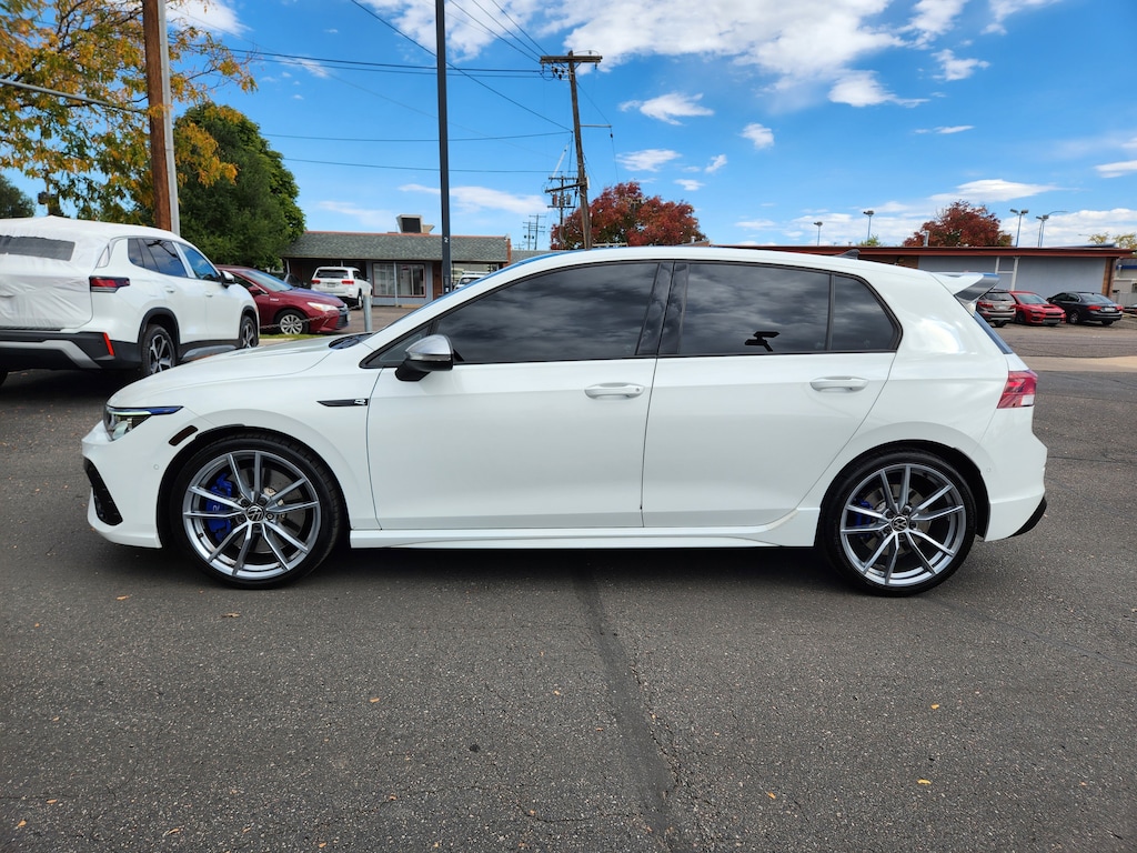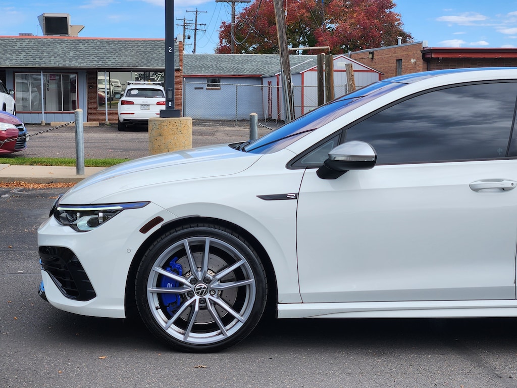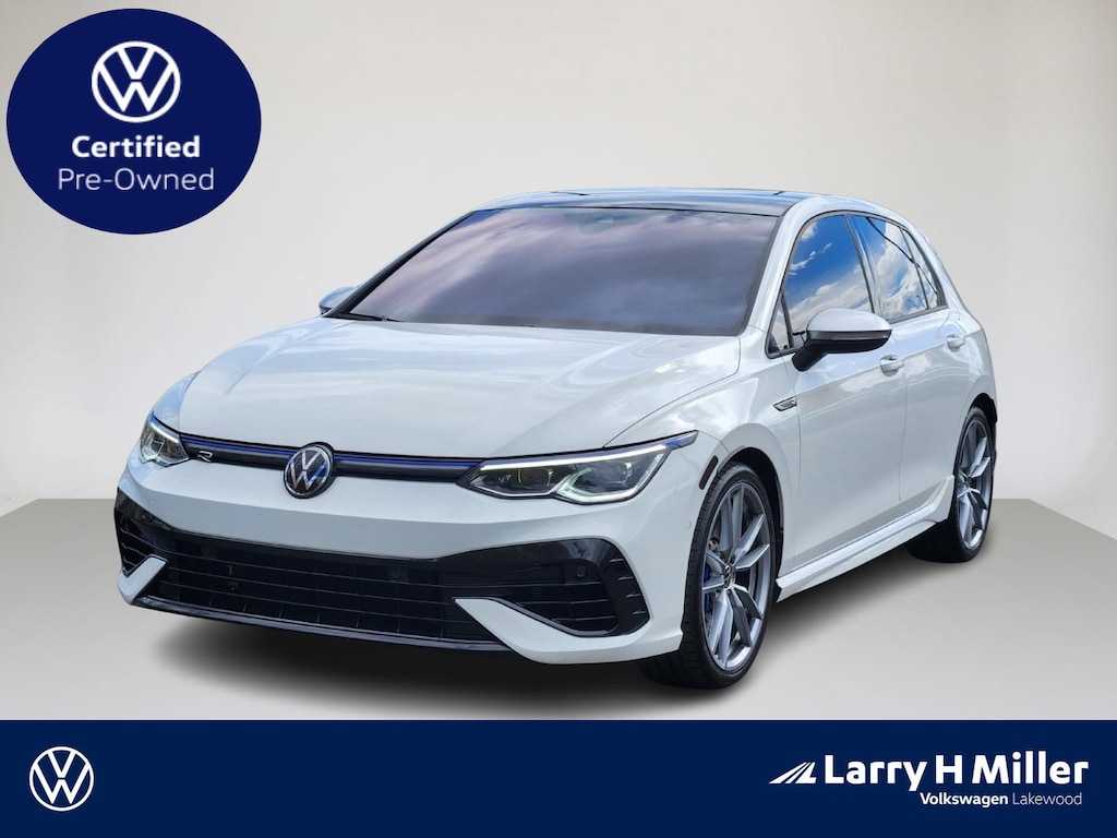 19 Metallic Gray Alloy Wheels, MDO Package (Luggage Net and Rubber Mats Kit), Golf R 2.0T, Volkswagen Certified Pre-Owned Certified, 4D Hatchback, 2.0L TSI DOHC, 7-Speed DSG Automatic with Tiptronic, AWD, Pure White, Titan Black w/Blue Accents w/Perforated Nappa Leather Seating Surfaces, Adaptive suspension, harman/kardon® Speakers, Heads-Up Display, Heated & Actively Ventilated Front Top Sport Seats, Heated steering wheel, Rain sensing wipers, 4-Wheel Disc Brakes, 9 Speakers, ABS brakes, Active Cruise Control, Air Conditioning, Alloy wheels, AM/FM radio: SiriusXM with 360L, Auto High-beam Headlights, Auto-dimming Rear-View mirror, Automatic temperature control, Brake assist, Bumpers: body-color, Compass, Delay-off headlights, Driver door bin, Driver vanity mirror, Dual front impact airbags, Dual front side impact airbags, Electronic Stability Control, Emergency communication system: VW Car-Net Safe & Secure 5-year, Exterior Parking Camera Rear, Four wheel independent suspension, Front anti-roll bar, Front Bucket Seats, Front Center Armrest, Front dual zone A/C, Front fog lights, Front reading lights, Fully automatic headlights, Heated door mirrors, Heated front seats, Heated rear seats, Illuminated entry, Leather Shift Knob, Leather steering wheel, Low tire pressure warning, Memory seat, Navigation System, Occupant sensing airbag, Outside temperature display, Overhead airbag, Overhead console, Panic alarm, Passenger door bin, Passenger vanity mirror, Perforated Nappa Leather Seating Surfaces, Power door mirrors, Power driver seat, Power moonroof, Power passenger seat, Power steering, Power windows, Radio data system, Radio: MIB3 Discover Pro AM/FM/HD, Rear air conditioning, Rear anti-roll bar, Rear reading lights, Rear seat center armrest, Rear window defroster, Rear window wiper, Rearview Mirror w/HomeLink Connect, Remote keyless entry, Security system, Speed control, Speed-sensing steering, Speed-Sensitive Wipers, Split folding rear seat, Spoiler, Sport steering wheel, Steering wheel mounted audio controls, Tachometer, Telescoping steering wheel, Tilt steering wheel, Traction control, Trip computer, Turn signal indicator mirrors, Variably intermittent wipers, Ventilated front seats, and Wheels: 19 2-Tone Machined Alloy. Recent Arrival! Odometer is 1324 miles below market average! 22/31 City/Highway MPG