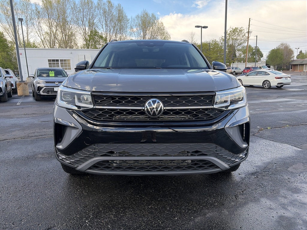 Taos 1.5T SE Black, Volkswagen Certified Pre-Owned Certified, 4D Sport Utility, 1.5L I4 Turbocharged DOHC 16V LEV3-SULEV30 158hp, 7-Speed DSG Automatic with Tiptronic, AWD, Pure Gray w/Deep Black Roof, Black w/CloudTex & Cloth Seating Surfaces, Active Cruise Control, Heated Front Bucket Seats, Heated steering wheel, Rain sensing wipers, 4-Wheel Disc Brakes, 5.20 Axle Ratio, 6 Speakers, ABS brakes, Active Blind Spot Monitor, Air Conditioning, Alloy wheels, AM/FM radio: SiriusXM with 360L, Auto High-beam Headlights, Automatic temperature control, Brake assist, Bumpers: body-color, CloudTex & Cloth Seating Surfaces, Compass, Delay-off headlights, Driver door bin, Driver vanity mirror, Dual front impact airbags, Dual front side impact airbags, Electronic Stability Control, Emergency communication system: VW Car-Net Safe & Secure 5-year, Exterior Parking Camera Rear, Four wheel independent suspension, Front anti-roll bar, Front Bucket Seats, Front Center Armrest, Front dual zone A/C, Front reading lights, Front Strut Rear Multi-Link Suspension, Fully automatic headlights, Heated door mirrors, Heated front seats, Illuminated entry, Leather Shift Knob, Low tire pressure warning, Occupant sensing airbag, Outside temperature display, Overhead airbag, Overhead console, Panic alarm, Passenger door bin, Passenger vanity mirror, Power door mirrors, Power driver seat, Power moonroof, Power steering, Power windows, Radio data system, Radio: MIB3 Composition Media AM/FM/HD, Rear anti-roll bar, Rear seat center armrest, Rear window defroster, Rear window wiper, Remote keyless entry, Rubber Mats Kit (SNM), Security system, Speed control, Speed-sensing steering, Split folding rear seat, Spoiler, Steering wheel mounted audio controls, Tachometer, Telescoping steering wheel, Tilt steering wheel, Traction control, Trip computer, Variably intermittent wipers, Wheel Splash Guards (Set of 4), and Wheels: 19 Black Painted Alloy. Recent Arrival! 24/32 City/Highway MPG