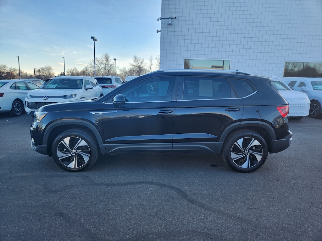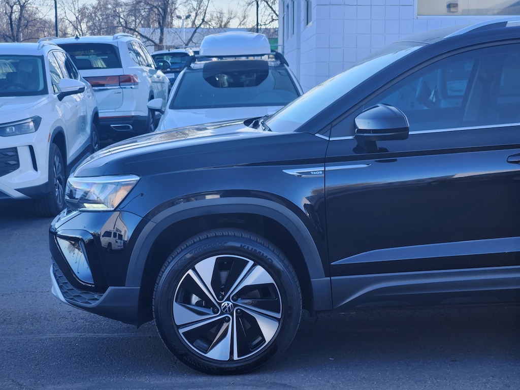 Taos 1.5T SE, Volkswagen Certified Pre-Owned Certified, 4D Sport Utility, 1.5L I4 Turbocharged DOHC 16V LEV3-SULEV30 158hp, 7-Speed DSG Automatic with Tiptronic, AWD, Deep Black Pearl, Black w/CloudTex & Cloth Seating Surfaces, Heated Front Bucket Seats, Heated steering wheel, Rain sensing wipers, 4-Wheel Disc Brakes, 5.20 Axle Ratio, 6 Speakers, ABS brakes, Active Blind Spot Monitor, Air Conditioning, Alloy wheels, AM/FM radio: SiriusXM with 360L, Auto High-beam Headlights, Automatic temperature control, Brake assist, Bumpers: body-color, CloudTex & Cloth Seating Surfaces, Compass, Delay-off headlights, Driver door bin, Driver vanity mirror, Dual front impact airbags, Dual front side impact airbags, Electronic Stability Control, Emergency communication system: VW Car-Net Safe & Secure 5-year, Exterior Parking Camera Rear, Four wheel independent suspension, Front anti-roll bar, Front Bucket Seats, Front Center Armrest, Front dual zone A/C, Front reading lights, Front Strut Rear Multi-Link Suspension, Fully automatic headlights, Heated door mirrors, Heated front seats, Illuminated entry, Leather Shift Knob, Low tire pressure warning, Occupant sensing airbag, Outside temperature display, Overhead airbag, Overhead console, Panic alarm, Passenger door bin, Passenger vanity mirror, Power door mirrors, Power driver seat, Power steering, Power windows, Radio data system, Radio: MIB3 Composition Media AM/FM/HD, Rear anti-roll bar, Rear seat center armrest, Rear window defroster, Rear window wiper, Remote keyless entry, Security system, Speed control, Speed-sensing steering, Split folding rear seat, Spoiler, Steering wheel mounted audio controls, Tachometer, Telescoping steering wheel, Tilt steering wheel, Traction control, Trip computer, Variably intermittent wipers, and Wheels: 18 2-Tone Machined Alloy. Odometer is 12174 miles below market average! 24/32 City/Highway MPG