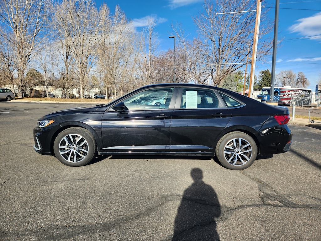 Certified. Deep Black Pearl 2025 Volkswagen Jetta 1.5T SE FWD 8-Speed Automatic with Tiptronic 1.5L I-4 DI DOHC Turbocharged Clean Carfax, Local Trade, Apple Carplay / Android Auto, Bluetooth, Backup Camera, Jetta 1.5T SE, 4D Sedan, 1.5L I-4 DI DOHC Turbocharged, 8-Speed Automatic with Tiptronic, FWD, Deep Black Pearl, Atlantic Blue/Storm Gray w/CloudTex & V-Tex Leatherette Seat Trim, Heated door mirrors, Heated Front Seats, Rain sensing wipers.
