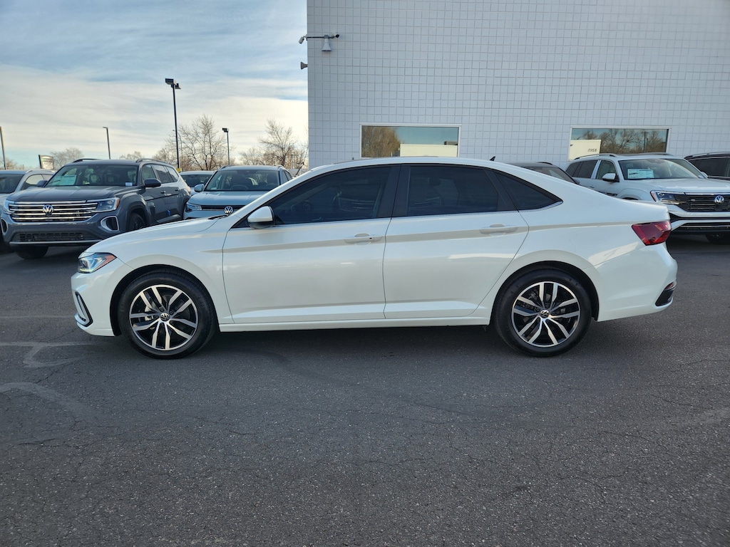 Certified. Opal White Pearl 2025 Volkswagen Jetta 1.5T SE FWD 8-Speed Automatic with Tiptronic 1.5L I-4 DI DOHC Turbocharged Clean Carfax, One Owner, Local Trade, Apple Carplay / Android Auto, Bluetooth, Backup Camera, Blind Spot Monitor, Jetta 1.5T SE, 4D Sedan, 1.5L I-4 DI DOHC Turbocharged, 8-Speed Automatic with Tiptronic, FWD, Opal White Pearl, Atlantic Blue/Storm Gray w/CloudTex & V-Tex Leatherette Seat Trim, Heated Front Seats, Power Tilting & Sliding Sunroof, Sunroof Package.