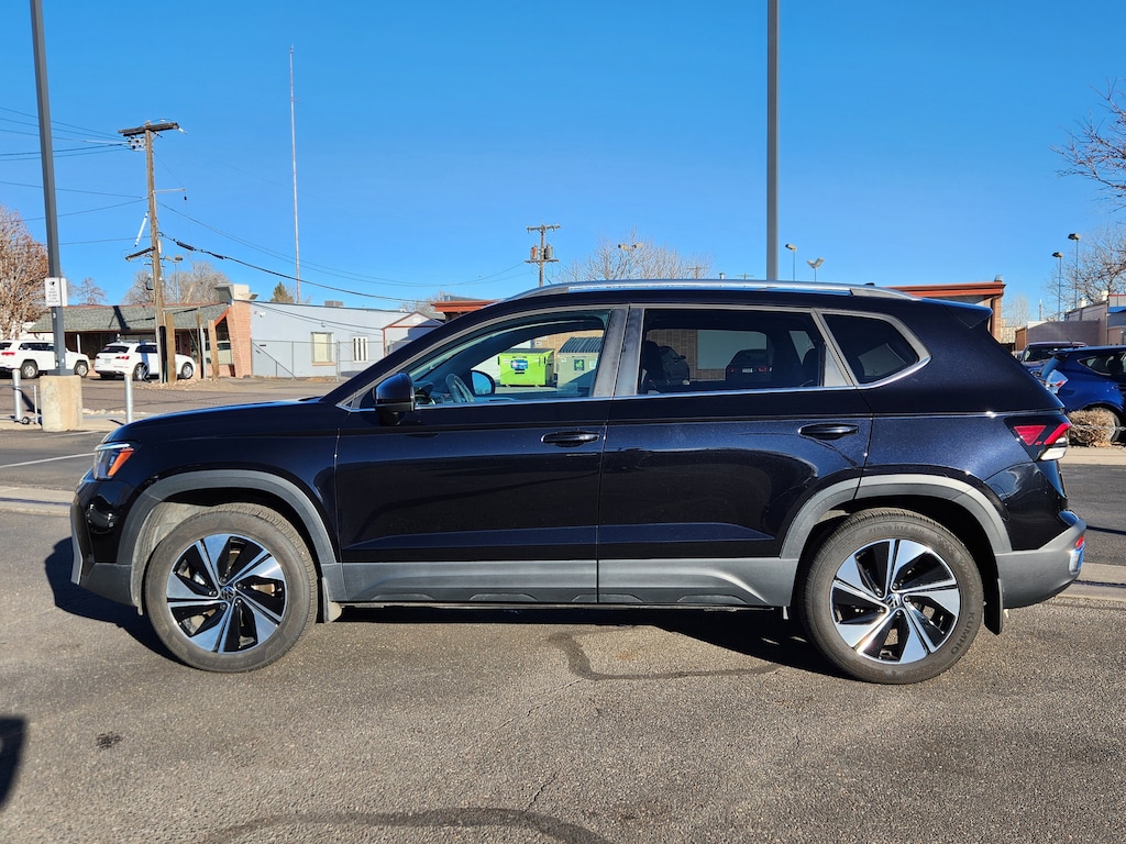 Taos 1.5T SE, Volkswagen Certified Pre-Owned Certified, 4D Sport Utility, 1.5L I4 Turbocharged DOHC 16V LEV3-SULEV30 174hp, 8-Speed Automatic with Tiptronic, AWD, Deep Black Pearl, Black w/Cloudtex and Cloth Seating Surfaces, Heated Front Bucket Seats, Heated steering wheel, Rain sensing wipers, 4-Wheel Disc Brakes, 6 Speakers, ABS brakes, Active Blind Spot Monitor, Air Conditioning, Alloy wheels, AM/FM radio: SiriusXM with 360L, Auto High-beam Headlights, Automatic temperature control, Brake assist, Bumpers: body-color, CloudTex & Cloth Seating Surfaces, Compass, Delay-off headlights, Driver door bin, Driver vanity mirror, Dual front impact airbags, Dual front side impact airbags, Electronic Stability Control, Emergency communication system: VW Car-Net Safe & Secure 5-year, Exterior Parking Camera Rear, Four wheel independent suspension, Front anti-roll bar, Front Bucket Seats, Front Center Armrest, Front dual zone A/C, Front reading lights, Front Strut Rear Multi-Link Suspension, Fully automatic headlights, Heated door mirrors, Heated front seats, Illuminated entry, Leather Shift Knob, Low tire pressure warning, Occupant sensing airbag, Outside temperature display, Overhead airbag, Overhead console, Panic alarm, Passenger door bin, Passenger vanity mirror, Power door mirrors, Power driver seat, Power steering, Power windows, Radio data system, Radio: MIB3 Composition Media AM/FM/HD, Rear anti-roll bar, Rear seat center armrest, Rear window defroster, Rear window wiper, Remote keyless entry, Security system, Speed control, Speed-sensing steering, Split folding rear seat, Spoiler, Steering wheel mounted audio controls, Tachometer, Telescoping steering wheel, Tilt steering wheel, Traction control, Trip computer, Variably intermittent wipers, and Wheels: 18 2-Tone Machined Alloy. Recent Arrival! 25/33 City/Highway MPG