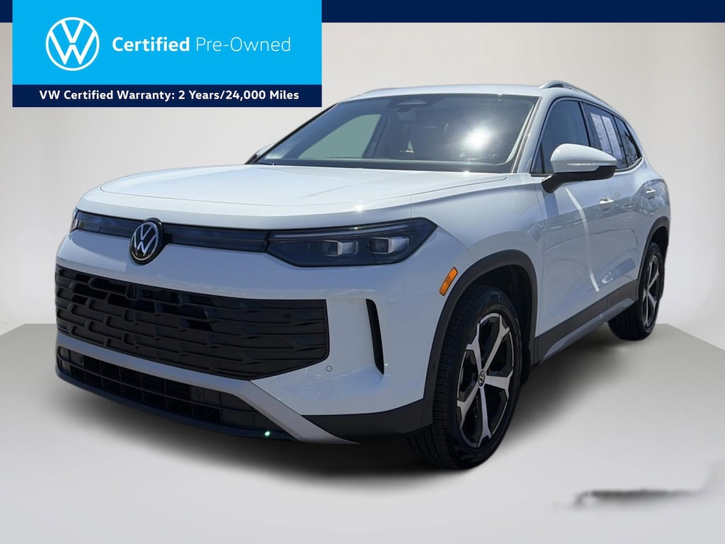 Certified. Pure White 2025 Volkswagen Tiguan 2.0T SE AWD 8-Speed Automatic 2.0L TSI DOHC AWD.