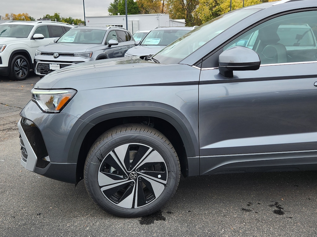 Platinum Gray Metallic 2025 Volkswagen Taos 1.5T SE AWD 8-Speed Automatic with Tiptronic 1.5L I4 Turbocharged DOHC 16V LEV3-SULEV30 174hp Dealer Discount of $1,809 off MSRP