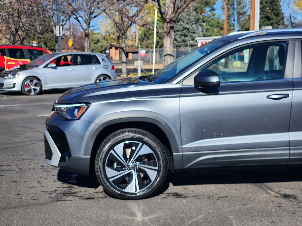 Platinum Gray Metallic 2025 Volkswagen Taos 1.5T SE AWD 8-Speed Automatic with Tiptronic 1.5L I4 Turbocharged DOHC 16V LEV3-SULEV30 174hp Dealer Discount of $2,000 off MSRP