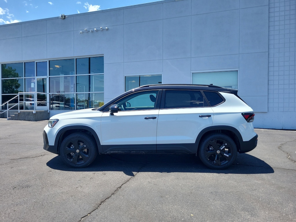 Pure White w/Deep Black Roof 2025 Volkswagen Taos 1.5T SE AWD 8-Speed Automatic with Tiptronic 1.5L I4 Turbocharged DOHC 16V LEV3-SULEV30 174hp Dealer Discount of $1,806 off MSRP