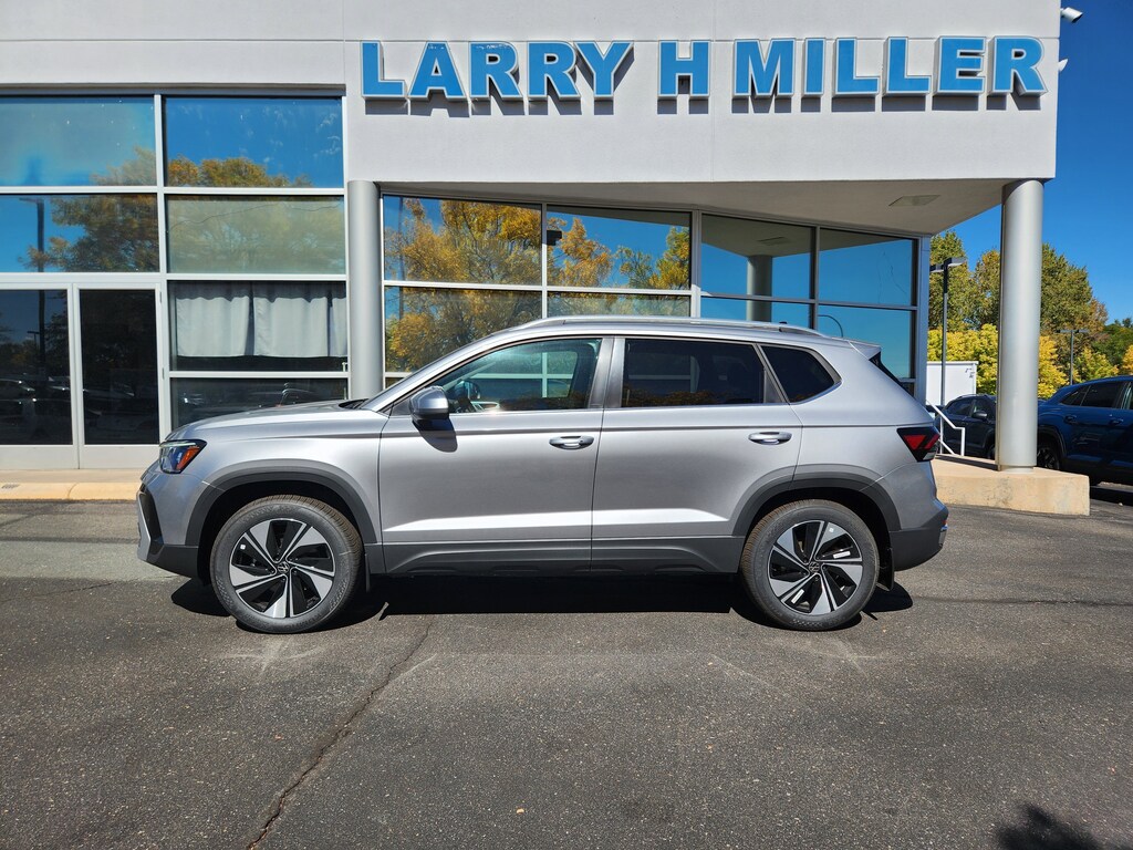 Pyrite Silver Metallic 2025 Volkswagen Taos 1.5T SE AWD 8-Speed Automatic with Tiptronic 1.5L I4 Turbocharged DOHC 16V LEV3-SULEV30 174hp Dealer Discount of $2,082 off MSRP