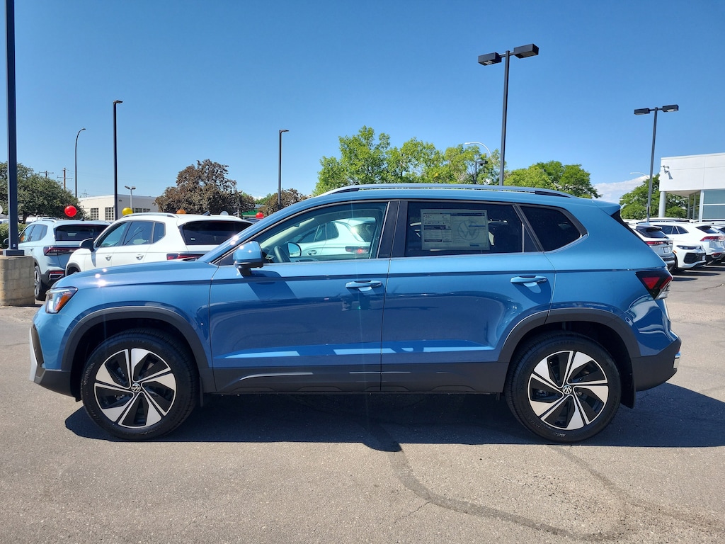 Monterey Blue Pearl 2025 Volkswagen Taos 1.5T SE AWD 8-Speed Automatic with Tiptronic 1.5L I4 Turbocharged DOHC 16V LEV3-SULEV30 174hp Dealer Discount of $1,857 off MSRP