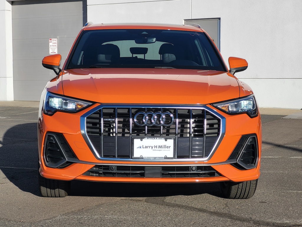 Convenience Package (Alarm w/Motion Sensor, Audi Advanced Key, Driver Memory, Frameless Auto-Dimming Interior Mirror w/Compass, Heated Power-Folding Exterior Mirrors, HomeLink Garage Door Opener, and SiriusXM All Access Service), Q3 Premium S Line quattro, 4D Sport Utility, 2.0L 4-Cylinder TFSI, 8-Speed Automatic with Tiptronic, quattro, Pulse Orange, Black w/Rock Gray Stitching w/Leather Seating Surfaces, Heated Front Bucket Seats, Rain sensing wipers, 10 Speakers, 3.533 Axle Ratio, 4-Wheel Disc Brakes, ABS brakes, Air Conditioning, Alloy wheels, AM/FM radio, Audi smartphone interface (Apple CarPlay/Android Auto), Auto High-beam Headlights, Automatic temperature control, Brake assist, Bumpers: body-color, Delay-off headlights, Driver door bin, Driver vanity mirror, Dual front impact airbags, Dual front side impact airbags, Electronic Stability Control, Emergency communication system: Audi connect CARE, Exterior Parking Camera Rear, Four wheel independent suspension, Front anti-roll bar, Front Bucket Seats, Front Center Armrest, Front dual zone A/C, Front fog lights, Front reading lights, Fully automatic headlights, Heated door mirrors, Heated front seats, Illuminated entry, Knee airbag, Leather Seating Surfaces, Leather Shift Knob, Leather steering wheel, Low tire pressure warning, Occupant sensing airbag, Outside temperature display, Overhead airbag, Overhead console, Panic alarm, Passenger door bin, Passenger vanity mirror, Power door mirrors, Power driver seat, Power Liftgate, Power moonroof: Panoramic, Power passenger seat, Power steering, Power windows, Radio data system, Radio: Audi Sound System, Rear air conditioning, Rear anti-roll bar, Rear fog lights, Rear reading lights, Rear seat center armrest, Rear window defroster, Rear window wiper, Remote keyless entry, Speed control, Speed-sensing steering, Split folding rear seat, Spoiler, Steering wheel mounted audio controls, Tachometer, Telescoping steering wheel, Tilt steering wheel, Traction control, Trip computer, Turn signal indicator mirrors, Variably intermittent wipers, and Wheels: 18 5-V-Spoke-S Design. Odometer is 18572 miles below market average! 21/28 City/Highway MPG