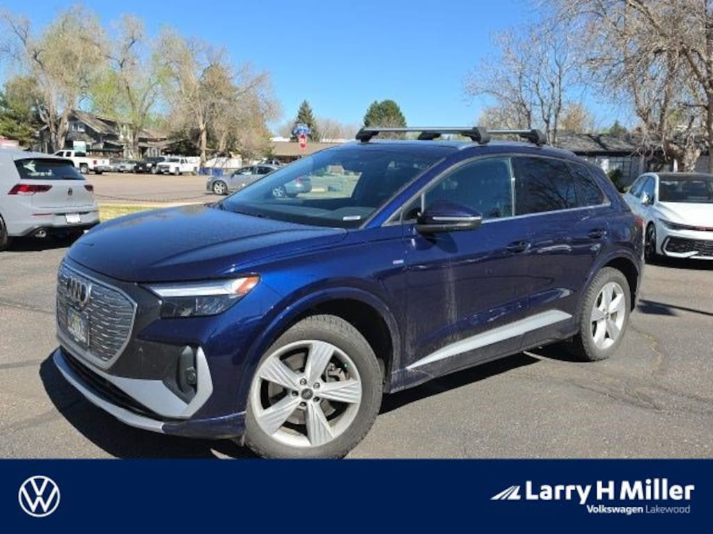 Navarra Blue Metallic 2023 Audi Q4 e-tron Premium quattro quattro Single-Speed Automatic Electric Motor One Owner, Local Trade, AWD, 4WD, Apple Carplay / Android Auto, Bluetooth, Backup Camera, Q4 e-tron Premium quattro, 4D Sport Utility, Electric Motor, Single-Speed Automatic, quattro, Navarra Blue Metallic, Black/Rock Gray Stitching w/Leather Seating Surfaces, Alarm System w/Motion Sensor, Auto-Dimming Interior Mirror w/Compass, Auto-Dimming Power Folding Exterior Mirrors, Convenience Package, Dual-Pane Acoustic Glass for Front Side Windows, Hands-Free Power Tailgate, Memory for Driver's Seat, Power Front Passenger Seat, Projection Light in Exterior Mirrors, Wireless Phone Charging Pad.