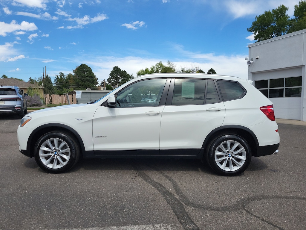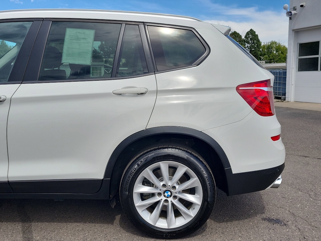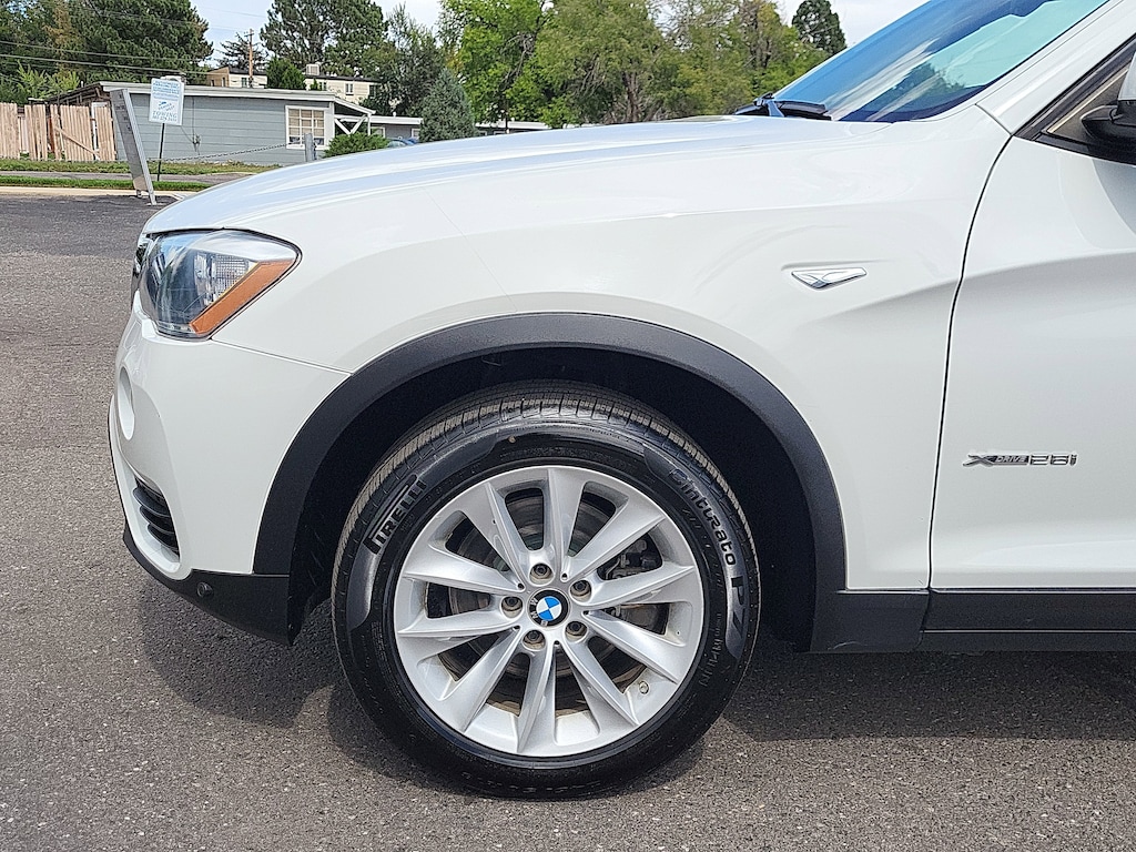 Cold Weather Package (Heated Front Seats, Heated Rear Seats, Heated Steering Wheel, and Retractable Headlight Washers), Premium Package 3 (Panoramic Moonroof, Comfort Access Keyless Entry, Lumbar Support, and SiriusXM Satellite Radio), Cold Weather Package 2, Driving Assistance Package (Rear-View Camera), X3 xDrive28i, 4D Sport Utility, 2.0L I4 TwinPower Turbo, 8-Speed Automatic, AWD, Alpine White, Black w/Gray Contrast Stitching w/Nevada Leather Upholstery, Advanced Real-Time Traffic Information, BMW Online & BMW Apps, harman/kardon Surround Sound System, Navigation System, 18 x 8.0 V Spoke (Style 307) Wheels, 3.39 Axle Ratio, 4-Wheel Disc Brakes, 9 Speakers, ABS brakes, Air Conditioning, Alloy wheels, AM/FM radio, Anti-Theft AM/FM Stereo CD/MP3 Player, Anti-whiplash front head restraints, Auto-dimming door mirrors, Auto-dimming Rear-View mirror, Automatic temperature control, Bodyside moldings, Brake assist, Bumpers: body-color, CD player, Delay-off headlights, Driver door bin, Driver vanity mirror, Dual front impact airbags, Dual front side impact airbags, Electronic Stability Control, Emergency communication system: BMW Assist eCall, Four wheel independent suspension, Front anti-roll bar, Front Bucket Seats, Front Center Armrest, Front dual zone A/C, Front fog lights, Front reading lights, Fully automatic headlights, Garage door transmitter, Genuine wood console insert, Hands-Free Bluetooth & USB Audio Connection, HD Radio, Hi-Fi Sound System, Illuminated entry, Leather steering wheel, Low tire pressure warning, Memory seat, Occupant sensing airbag, Outside temperature display, Overhead airbag, Panic alarm, Passenger door bin, Passenger vanity mirror, Power door mirrors, Power driver seat, Power Front Bucket Seats, Power Liftgate, Power passenger seat, Power steering, Power windows, Radio BMW Professional, Radio data system, Rain sensing wipers, Rear anti-roll bar, Rear fog lights, Rear reading lights, Rear seat center armrest, Rear window defroster, Rear window wiper, Remote keyless entry, Remote Services, Roof rack: rails only, Security system, SensaTec Leatherette Upholstery, Speed control, Speed-sensing steering, Speed-Sensitive Wipers, Split folding rear seat, Spoiler, Sport steering wheel, Steering wheel mounted audio controls, Tachometer, Telescoping steering wheel, Tilt steering wheel, Traction control, Trip computer, Turn signal indicator mirrors, and Variably intermittent wipers. 21/28 City/Highway MPG