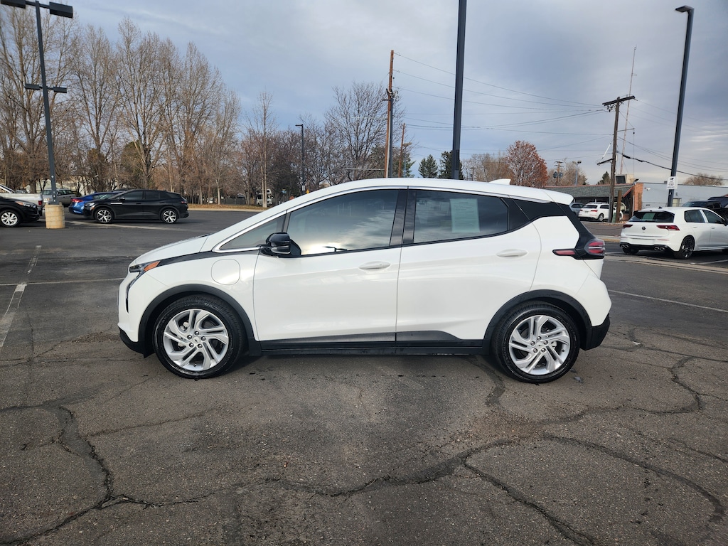 Comfort & Convenience Package (2-Way Power Driver Lumbar Seat Adjuster, 8-Way Power Driver Seat Adjuster, Auto-Dimming Inside Rear-View Mirror, Automatic Heated Steering Wheel, Flat-Bottom Leather-Wrapped Steering Wheel, and Heated Driver & Front Passenger Seats), Driver Confidence Package (Lane Change Alert w/Side Blind Zone Alert, Rear Cross-Traffic Alert, and Rear Park Assist), Preferred Equipment Group 1LT, Bolt EV 1LT, 4D Wagon, Electric Drive Unit, 1-Speed Automatic, FWD, Summit White, Jet Black w/Cloth Seat Trim, 4-Wheel Disc Brakes, 6 Speakers, 6-Speaker Audio System, 6-Way Manual Driver Seat Adjuster, 6-Way Manual Passenger Seat Adjuster, ABS brakes, Air Conditioning, Alloy wheels, AM/FM radio: SiriusXM with 360L, Apple CarPlay/Android Auto, Auto High-beam Headlights, Automatic temperature control, Brake assist, Bumpers: body-color, Cloth Seat Trim, Compass, Delay-off headlights, Driver door bin, Driver vanity mirror, Dual front impact airbags, Dual front side impact airbags, Electronic Stability Control, Emergency communication system: OnStar and Chevrolet connected services capable, Front anti-roll bar, Front Bucket Seats, Front Center Armrest, Front Mounting License Plate Bracket, Front reading lights, Front wheel independent suspension, Fully automatic headlights, Heated door mirrors, Illuminated entry, Knee airbag, Low tire pressure warning, Occupant sensing airbag, Outside temperature display, Overhead airbag, Overhead console, Panic alarm, Passenger door bin, Passenger vanity mirror, Power door mirrors, Power steering, Power windows, Premium audio system: Chevrolet Infotainment 3 Plus, Radio: Chevrolet Infotainment 3 Plus System, Rear side impact airbag, Rear window defroster, Rear window wiper, Remote keyless entry, Security system, SiriusXM Radio w/360L, Speed control, Split folding rear seat, Spoiler, Sport steering wheel, Steering wheel mounted audio controls, Telescoping steering wheel, Tilt steering wheel, Traction control, Trip computer, Variably intermittent wipers, and Wheels: 17 Silver Painted Aluminum. Recent Arrival! Odometer is 12770 miles below market average! 131/109 City/Highway MPG