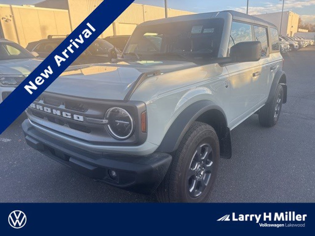 Equipment Group 222A Mid Package (Ambient Footwell Lighting, Connected Navigation, Dual-Zone Electronic Automatic Temperature Control, Front Row Heated Seats, Power Outlet - Back Side of Center Floor Console, Rear Parking Sensors, Remote Start System, 2-Door Intelligent Access w/Lock/Unlock, Auto-Dimming Interior Rear-View Mirror, Dr & Pass Illuminated Sliding Visor Vanity Mirrors, and Enhanced Voice Recognition), Bronco Big Bend, 4D Sport Utility, 2.3L EcoBoost I-4, 10-Speed Automatic, 4WD, Cactus Gray, Medium Sandstone w/Black Onyx w/Heated Cloth Bucket Seats, Carbonized Gray Molded-In-Color Hard Top, Hard Top Sound Deadening Headliner, Rear-Window Defroster & Washer, 4-Wheel Disc Brakes, 6 Speakers, ABS brakes, Air Conditioning, AM/FM radio: SiriusXM with 360L, AM/FM Stereo, Auto High-beam Headlights, Brake assist, Compass, Delay-off headlights, Driver door bin, Driver vanity mirror, Dual front impact airbags, Dual front side impact airbags, Electronic Stability Control, Emergency communication system: 911 Assist, Exterior Parking Camera Rear, Front & Rear Floor Liners, Front anti-roll bar, Front Bucket Seats, Front Center Armrest, Front License Plate Bracket, Front reading lights, Front Row Top Panels Storage Bag, Front wheel independent suspension, Fully automatic headlights, Heated Cloth Bucket Seats, Heated door mirrors, Illuminated entry, Integrated roll-over protection, Low tire pressure warning, Occupant sensing airbag, Outside temperature display, Overhead airbag, Overhead console, Panic alarm, Passenger door bin, Passenger vanity mirror, Power door mirrors, Power steering, Power windows, Radio data system, Rear-View Camera, Remote keyless entry, Security system, SiriusXM Radio w/360L, Speed control, Split folding rear seat, Steering wheel mounted audio controls, SYNC 4, Tachometer, Telescoping steering wheel, Tilt steering wheel, Traction control, Trip computer, and Variably intermittent wipers. Recent Arrival!
