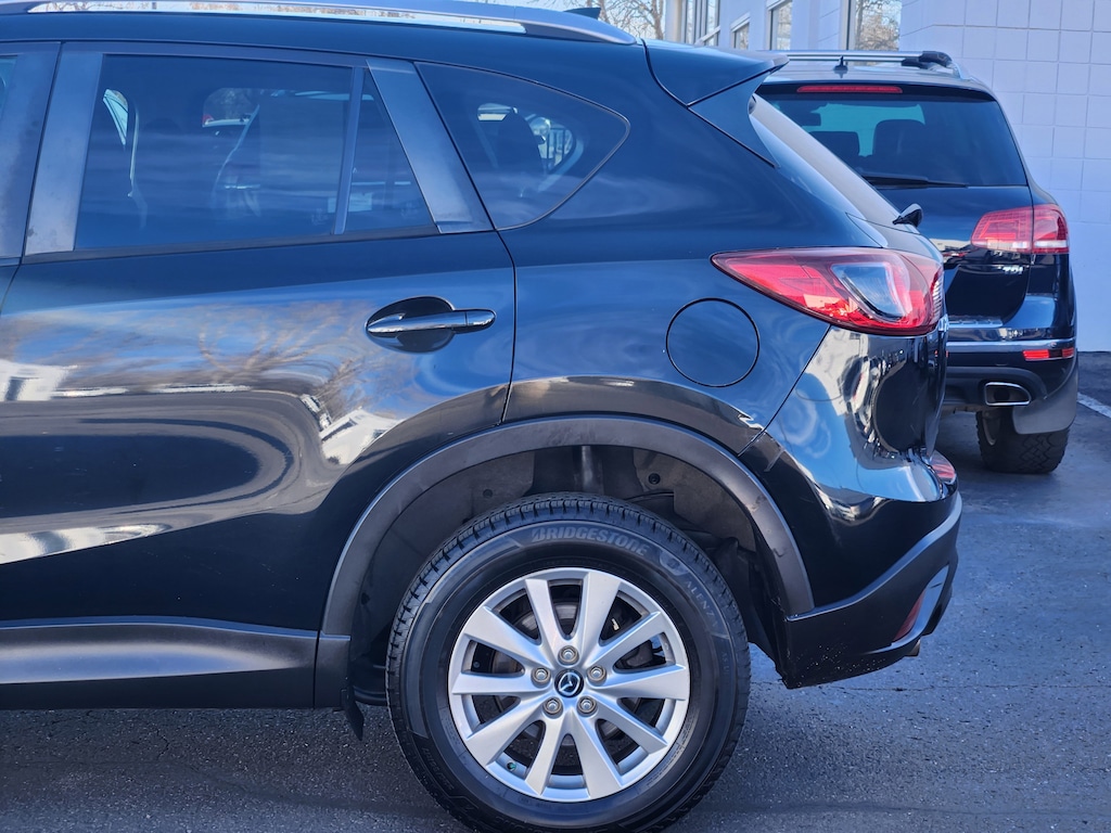 BOSE/Moonroof Package (Bose 9-Speaker Audio Sound System and Power Sliding-Glass Moonroof w/Interior Sunshade), CX-5 Touring, 4D Sport Utility, SKYACTIV® 2.5L 4-Cylinder DOHC 16V, 6-Speed Automatic, FWD, Jet Black Mica, Black w/Cloth Seat Trim, 17 x 7J Aluminum Alloy Wheels, 4-Wheel Disc Brakes, 4.624 Axle Ratio, 6 Speakers, ABS brakes, Air Conditioning, Alloy wheels, AM/FM radio, Brake assist, Bumpers: body-color, CD player, Cloth Seat Trim, Delay-off headlights, Driver door bin, Driver vanity mirror, Dual front impact airbags, Dual front side impact airbags, Electronic Stability Control, Exterior Parking Camera Rear, Four wheel independent suspension, Front anti-roll bar, Front Bucket Seats, Front Center Armrest, Front fog lights, Front reading lights, Illuminated entry, Leather Shift Knob, Low tire pressure warning, Occupant sensing airbag, Outside temperature display, Overhead airbag, Overhead console, Panic alarm, Passenger door bin, Passenger vanity mirror, Power door mirrors, Power driver seat, Power steering, Power windows, Radio data system, Radio: AM/FM/CD/HD Modular Audio System w/6 Spkrs, Rear anti-roll bar, Rear reading lights, Rear seat center armrest, Rear window defroster, Rear window wiper, Remote keyless entry, Roof Rack Side Rails, Speed control, Speed-sensing steering, Split folding rear seat, Spoiler, Steering wheel mounted audio controls, Tachometer, Telescoping steering wheel, Tilt steering wheel, Traction control, Trip computer, Turn signal indicator mirrors, Variably intermittent wipers, and Wheel Locks. 26/33 City/Highway MPG