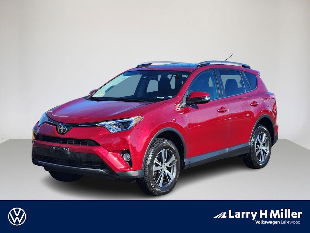Power Plus Extra Value Package (Blind Spot Monitor, Height-Adjustable Power Liftgate, Radio: Entune Display Audio, Rear Backup Camera w/Monitor, Roof Rails, and Smart Key System), Plus Extra Value Package, RAV4 XLE, 4D Sport Utility, 2.5L 4-Cylinder DOHC Dual VVT-i, 6-Speed Automatic, AWD, Ruby Flare Pearl, Black w/Fabric Seat Trim, ABS brakes, Active Cruise Control, Front dual zone A/C, Heated door mirrors, Illuminated entry, Low tire pressure warning, Power moonroof, Remote keyless entry, Traction control, 4-Wheel Disc Brakes, 4.071 Axle Ratio, 6 Speakers, Air Conditioning, Alloy wheels, AM/FM radio, Auto High-beam Headlights, Automatic temperature control, Brake assist, Bumpers: body-color, CD player, Driver door bin, Driver vanity mirror, Dual front impact airbags, Dual front side impact airbags, Electronic Stability Control, Exterior Parking Camera Rear, Fabric Seat Trim, Four wheel independent suspension, Front anti-roll bar, Front Bucket Seats, Front Center Armrest, Front fog lights, Front reading lights, Front Sport Seats, Fully automatic headlights, Knee airbag, Leather steering wheel, Occupant sensing airbag, Outside temperature display, Overhead airbag, Overhead console, Panic alarm, Passenger door bin, Passenger vanity mirror, Power door mirrors, Power steering, Power windows, Radio data system, Radio: Entune AM/FM/CD/MP3/WMA Playback w/6 Speakers, Rear anti-roll bar, Rear seat center armrest, Rear window defroster, Rear window wiper, Speed control, Speed-sensing steering, Split folding rear seat, Spoiler, Steering wheel mounted audio controls, Tachometer, Telescoping steering wheel, Tilt steering wheel, Trip computer, Turn signal indicator mirrors, Variably intermittent wipers, and Wheels: 17 5-Spoke Superchrome Alloy. Recent Arrival! 22/28 City/Highway MPG