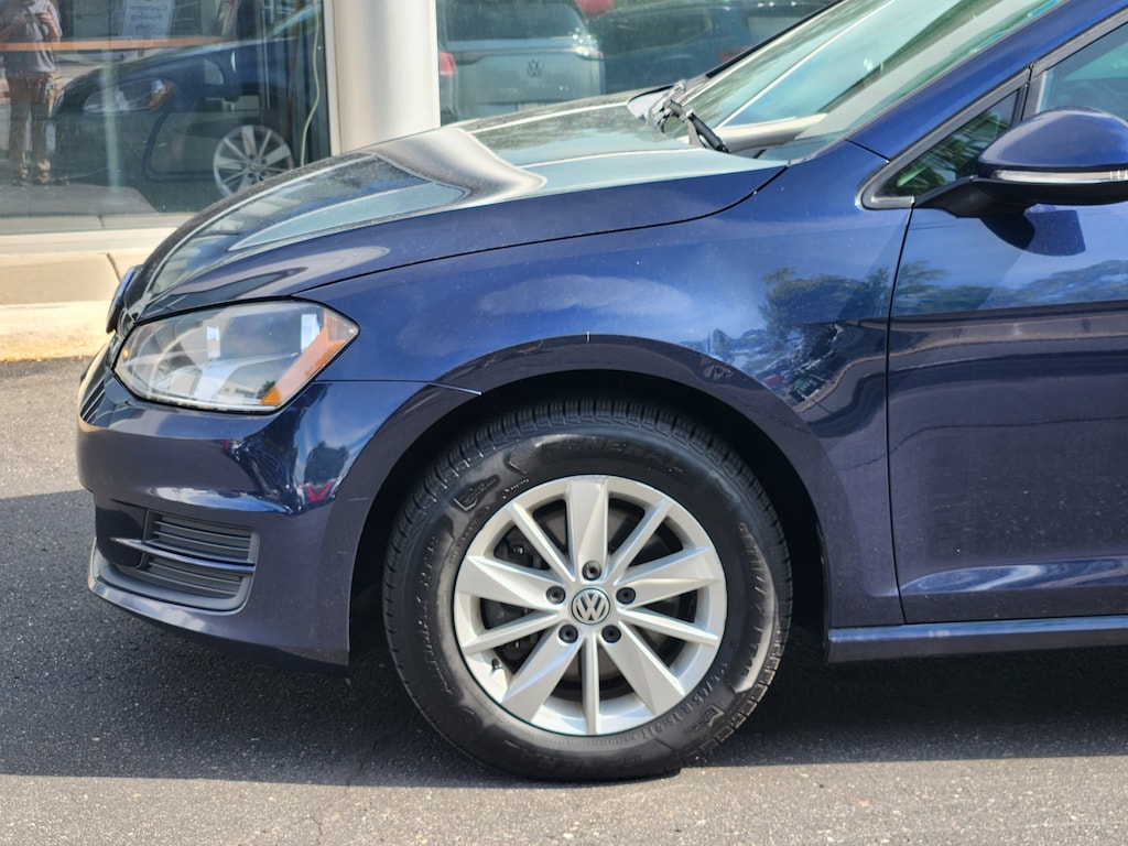 Golf SportWagen S, 4D Wagon, 1.8L I4 Turbocharged DOHC 16V ULEV II 170hp, 6-Speed Automatic with Tiptronic, FWD, Silk Blue Metallic, Titan Black w/Cloth Seating Surfaces, 4-Wheel Disc Brakes, 8 Speakers, ABS brakes, Air Conditioning, Alloy wheels, AM/FM radio: SiriusXM, Anti-whiplash front head restraints, Brake assist, Bumpers: body-color, CD player, Cloth Seating Surfaces, Comfort Front Seats, Compass, Driver door bin, Driver vanity mirror, Dual front impact airbags, Dual front side impact airbags, Electronic Stability Control, Emergency communication system: VW Car-Net, Exterior Parking Camera Rear, First Aid Kit, Four wheel independent suspension, Front anti-roll bar, Front Bucket Seats, Front Center Armrest, Front reading lights, Heated door mirrors, Illuminated entry, Leather Shift Knob, Leather steering wheel, Low tire pressure warning, Occupant sensing airbag, Outside temperature display, Overhead airbag, Overhead console, Panic alarm, Passenger door bin, Passenger vanity mirror, Power door mirrors, Power driver seat, Power passenger seat, Power steering, Power windows, Radio data system, Radio: Composition Media w/6.5 Touchscreen, Rear anti-roll bar, Rear reading lights, Rear seat center armrest, Rear window defroster, Rear window wiper, Remote keyless entry, Roof rack: rails only, Rubber Mat Kit, Security system, Speed control, Speed-sensing steering, Split folding rear seat, Steering wheel mounted audio controls, Tachometer, Telescoping steering wheel, Tilt steering wheel, Traction control, Trip computer, Turn signal indicator mirrors, Variably intermittent wipers, and Wheels: 15 Lyon Alloy. 25/35 City/Highway MPG