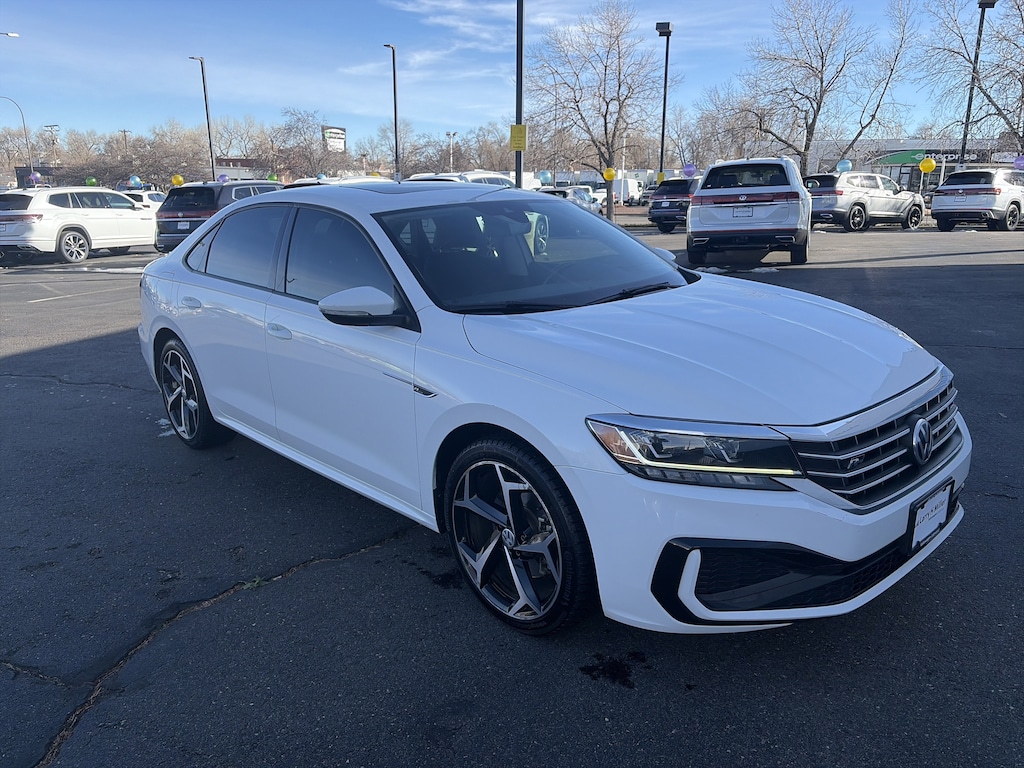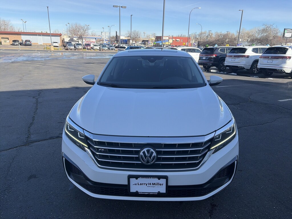 Passat 2.0T R-Line, 4D Sedan, 2.0L I4 TSI Turbocharged, 6-Speed Automatic with Tiptronic, FWD, Pure White, Titan Black w/Perforated Vienna Leather Seating Surfaces, Active Cruise Control, Heated Front Comfort Seats, Power moonroof, 4-Wheel Disc Brakes, 6 Speakers, ABS brakes, Active Blind Spot Monitor, Air Conditioning, Alloy wheels, AM/FM radio: SiriusXM, Auto-dimming Rear-View mirror, Automatic temperature control, Brake assist, Bumpers: body-color, Delay-off headlights, Driver door bin, Driver vanity mirror, Dual front impact airbags, Dual front side impact airbags, Electronic Stability Control, Exterior Parking Camera Rear, Four wheel independent suspension, Front anti-roll bar, Front Bucket Seats, Front Center Armrest, Front dual zone A/C, Front reading lights, Fully automatic headlights, Heated door mirrors, Heated front seats, Illuminated entry, Leather Shift Knob, Leather steering wheel, Low tire pressure warning, Occupant sensing airbag, Outside temperature display, Overhead airbag, Overhead console, Panic alarm, Passenger door bin, Passenger vanity mirror, Perforated V-Tex Leatherette Seating Surfaces, Power door mirrors, Power driver seat, Power steering, Power windows, Radio data system, Radio: Composition Media w/Touchscreen, Rain sensing wipers, Rear anti-roll bar, Rear reading lights, Rear seat center armrest, Rear window defroster, Remote keyless entry, Security system, Speed control, Speed-sensing steering, Split folding rear seat, Spoiler, Steering wheel mounted audio controls, Tachometer, Telescoping steering wheel, Tilt steering wheel, Traction control, Trip computer, Turn signal indicator mirrors, Variably intermittent wipers, VW App-Connect (w/Apple CarPlay, Android Auto & MirrorLink), and Wheels: 19 x 8J 5-Spoke 2-Tone Machined Alloy. Recent Arrival! 23/34 City/Highway MPG