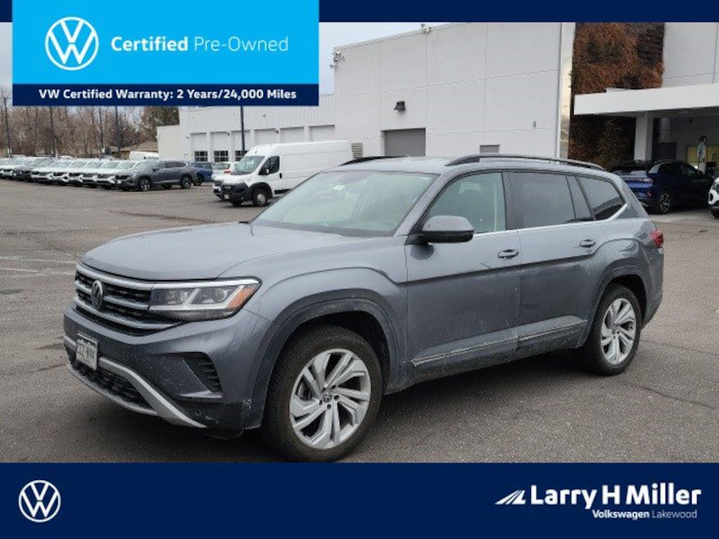 Trailer Hitch Extras, Atlas 3.6L V6 SE w/Technology, Volkswagen Certified Pre-Owned Certified, 4D Sport Utility, 3.6L VR6, 8-Speed Automatic with Tiptronic, AWD, Platinum Gray Metallic, Titan Black w/Perforated V-Tex Leatherette Seating Surfaces, 3rd row seats: split-bench, Auto-dimming Rear-View mirror, Heated Comfort Front Bucket Seats, Rain sensing wipers, 3.60 Axle Ratio, 4-Wheel Disc Brakes, 6 Speakers, ABS brakes, Air Conditioning, Alloy wheels, AM/FM radio: SiriusXM with 360L, Automatic temperature control, Brake assist, Bumpers: body-color, Compass, Delay-off headlights, Driver door bin, Driver vanity mirror, Dual front impact airbags, Dual front side impact airbags, Electronic Stability Control, Emergency communication system, Exterior Parking Camera Rear, Four wheel independent suspension, Front anti-roll bar, Front Bucket Seats, Front Center Armrest, Front dual zone A/C, Front fog lights, Front reading lights, Fully automatic headlights, Heated door mirrors, Heated front seats, Illuminated entry, Leather Shift Knob, Low tire pressure warning, Occupant sensing airbag, Outside temperature display, Overhead airbag, Overhead console, Panic alarm, Passenger door bin, Passenger vanity mirror, Perforated V-Tex Leatherette Seating Surfaces, Power door mirrors, Power driver seat, Power Liftgate, Power steering, Power windows, Radio data system, Radio: MIB3 Composition Media w/8 Touchscreen, Rear air conditioning, Rear anti-roll bar, Rear reading lights, Rear seat center armrest, Rear window defroster, Rear window wiper, Remote keyless entry, Roof rack: rails only, Security system, Speed control, Speed-sensing steering, Split folding rear seat, Spoiler, Standard Suspension, Steering wheel mounted audio controls, Tachometer, Telescoping steering wheel, Tilt steering wheel, Traction control, Trip computer, Turn signal indicator mirrors, Variably intermittent wipers, and Wheels: 20 x 8J 5-Spoke Silver Painted Alloy. Recent Arrival! Odometer is 12490 miles below market average!