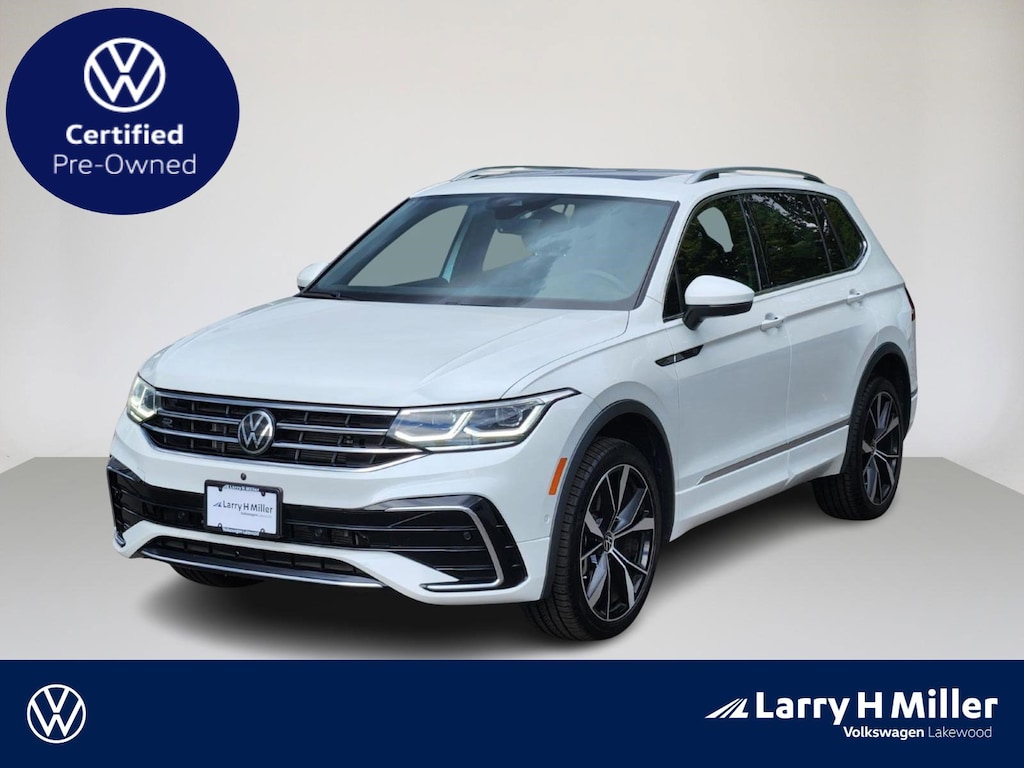 Tiguan 2.0T SEL R-Line, Volkswagen Certified Pre-Owned Certified, 4D Sport Utility, 2.0L TSI DOHC, 8-Speed Automatic with Tiptronic, AWD, Oryx White Pearl, Titan Black w/Perforated V-Tex Leatherette Seating Surfaces, Heated steering wheel, Heated/Ventilated Front Comfort Sport Seats, Navigation system: VW Car-Net Guide & Inform, 2-Row Rubber Monster Mats w/Logo Kit (Set of 4), 3.33 Axle Ratio, 4-Wheel Disc Brakes, 4-Wheel Independent Suspension, 8 Speakers, ABS brakes, Active Cruise Control, Air Conditioning, Alloy wheels, AM/FM radio: SiriusXM with 360L, Auto High-beam Headlights, Auto-dimming Rear-View mirror, Auto-Dimming Rearview Mirror w/HomeLink Connect (DISC), Automatic temperature control, Brake assist, Bumpers: body-color, Compass, Delay-off headlights, Driver door bin, Driver vanity mirror, Dual front impact airbags, Dual front side impact airbags, Electronic Stability Control, Emergency communication system: Car-Net, Four wheel independent suspension, Front anti-roll bar, Front Bucket Seats, Front Center Armrest, Front dual zone A/C, Front fog lights, Front reading lights, Fully automatic headlights, Heated door mirrors, Heated front seats, Heavy Duty Trunk Liner w/VW CarGo Blocks, Illuminated entry, Leather Shift Knob, Leather steering wheel, Low tire pressure warning, Memory seat, Navigation System, Occupant sensing airbag, Outside temperature display, Overhead airbag, Overhead console, Panic alarm, Passenger door bin, Passenger vanity mirror, Perforated Vienna Leather Seating Surfaces, Power door mirrors, Power driver seat, Power Liftgate, Power moonroof, Power passenger seat, Power steering, Power windows, Radio data system, Radio: MIB3 Discover Media AM/FM/HD, Rain sensing wipers, Rear anti-roll bar, Rear reading lights, Rear seat center armrest, Rear window defroster, Rear window wiper, Remote keyless entry, Roadside Assistance Kit, Roof rack: rails only, Security system, Speed control, Speed-sensing steering, Split folding rear seat, Spoiler, Sport steering wheel, Steering wheel mounted audio controls, Tachometer, Telescoping steering wheel, Tilt steering wheel, Traction control, Trip computer, Turn signal indicator mirrors, Variably intermittent wipers, Ventilated front seats, and Wheels: 20 Machined Black Alloy. Recent Arrival! Odometer is 5129 miles below market average! 21/28 City/Highway MPG