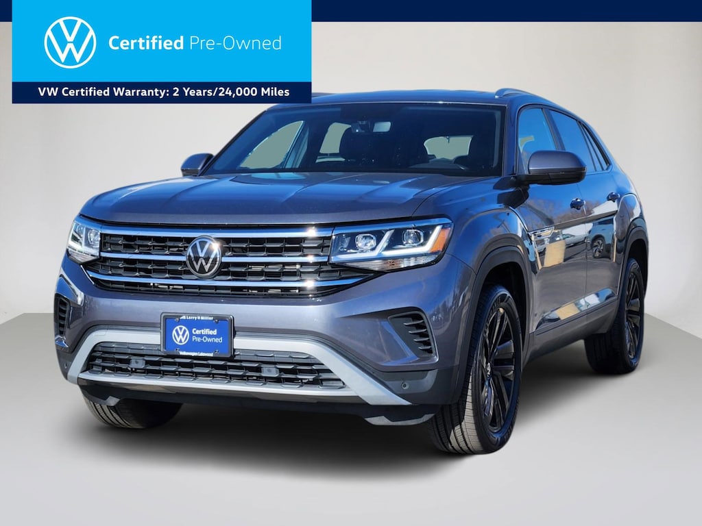 Black Wheel Package (Wheels: 20 x 8J 5-Spoke Black Painted Alloy), Atlas Cross Sport 2.0T SE w/Technology (A8), Volkswagen Certified Pre-Owned Certified, 4D Sport Utility, 2.0L TSI, 8-Speed Automatic with Tiptronic, AWD, Platinum Gray Metallic, Titan Black/Quartz w/Perforated Vienna Leather Seating Surfaces, Heated Comfort Front Bucket Seats, Perforated V-Tex Leatherette Seating Surfaces, 3.60 Axle Ratio, 4-Wheel Disc Brakes, 6 Speakers, ABS brakes, Air Conditioning, Alloy wheels, AM/FM radio: SiriusXM with 360L, Auto-dimming Rear-View mirror, Automatic temperature control, Brake assist, Bumpers: body-color, Compass, Delay-off headlights, Driver door bin, Driver vanity mirror, Dual front impact airbags, Dual front side impact airbags, Electronic Stability Control, Emergency communication system: VW Car-Net Safe & Secure 5-year, Exterior Parking Camera Rear, Four wheel independent suspension, Front anti-roll bar, Front Bucket Seats, Front Center Armrest, Front dual zone A/C, Front fog lights, Front reading lights, Fully automatic headlights, Heated door mirrors, Heated front seats, Illuminated entry, Leather Shift Knob, Low tire pressure warning, Occupant sensing airbag, Outside temperature display, Overhead airbag, Overhead console, Panic alarm, Passenger door bin, Passenger vanity mirror, Power door mirrors, Power driver seat, Power steering, Power windows, Radio data system, Radio: MIB3 Composition Media w/8 Touchscreen, Rain sensing wipers, Rear anti-roll bar, Rear reading lights, Rear seat center armrest, Rear window defroster, Rear window wiper, Remote keyless entry, Security system, Speed control, Speed-sensing steering, Split folding rear seat, Spoiler, Standard Suspension, Steering wheel mounted audio controls, Tachometer, Telescoping steering wheel, Tilt steering wheel, Traction control, Trip computer, Turn signal indicator mirrors, Variably intermittent wipers, and Wheels: 20 x 8J 5-Spoke Silver Painted Alloy. Recent Arrival! Odometer is 9895 miles below market average!