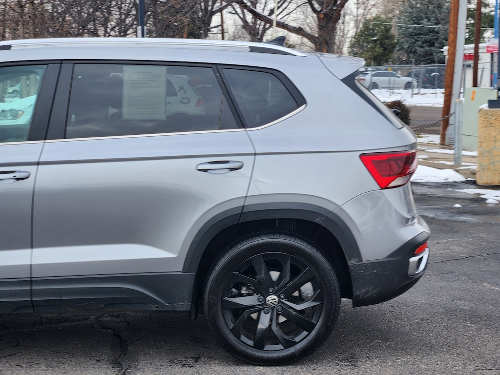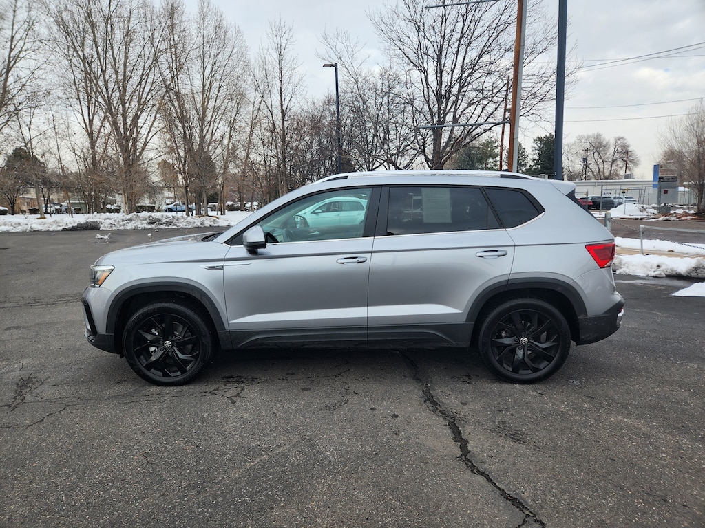 Black Wheel Package (Wheels: 18 Black Painted Alloy), Panoramic Sunroof Package, Taos 1.5T SE, 4D Sport Utility, 1.5L I4 Turbocharged DOHC 16V LEV3-SULEV30 158hp, 7-Speed DSG Automatic with Tiptronic, AWD, Pyrite Silver Metallic, Black w/CloudTex & Cloth Seating Surfaces, Heated steering wheel, Rain sensing wipers, 4-Wheel Disc Brakes, 5.20 Axle Ratio, 6 Speakers, ABS brakes, Active Blind Spot Monitor, Active Cruise Control, Air Conditioning, Alloy wheels, AM/FM radio: SiriusXM with 360L, Auto High-beam Headlights, Brake assist, Bumpers: body-color, CloudTex & Cloth Seating Surfaces, Compass, Delay-off headlights, Driver door bin, Driver vanity mirror, Dual front impact airbags, Dual front side impact airbags, Electronic Stability Control, Emergency communication system: VW Car-Net Safe & Secure 5-year, Exterior Parking Camera Rear, Four wheel independent suspension, Front anti-roll bar, Front Bucket Seats, Front Center Armrest, Front reading lights, Front Strut Rear Multi-Link Suspension, Fully automatic headlights, Heated door mirrors, Heated Front Comfort Seats, Heated front seats, Illuminated entry, Leather Shift Knob, Low tire pressure warning, Occupant sensing airbag, Outside temperature display, Overhead airbag, Overhead console, Panic alarm, Passenger door bin, Passenger vanity mirror, Power door mirrors, Power driver seat, Power steering, Power windows, Radio data system, Radio: MIB3 Composition Media AM/FM/HD, Rear anti-roll bar, Rear seat center armrest, Rear window defroster, Rear window wiper, Remote keyless entry, Security system, Speed control, Speed-sensing steering, Split folding rear seat, Spoiler, Steering wheel mounted audio controls, Tachometer, Telescoping steering wheel, Tilt steering wheel, Traction control, Trip computer, Variably intermittent wipers, and Wheels: 18 2-Tone Machined Alloy. Recent Arrival! Odometer is 28236 miles below market average! 25/32 City/Highway MPG