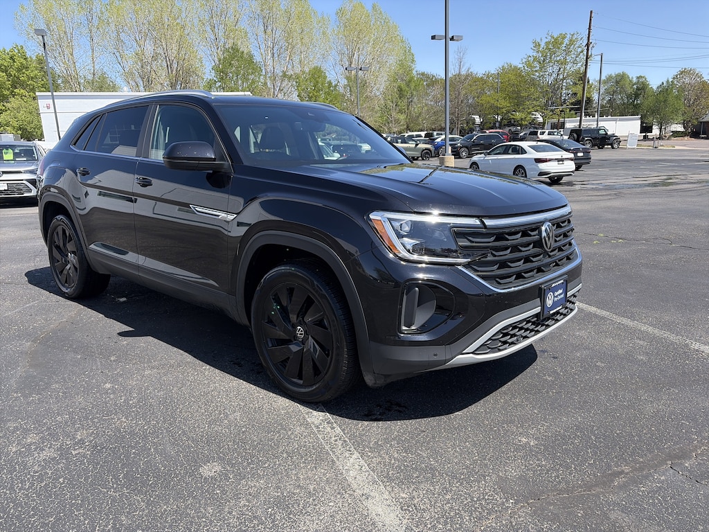 Certified. Deep Black Pearl 2024 Volkswagen Atlas Cross Sport 2.0T SE w/Technology AWD 8-Speed Automatic with Tiptronic 2.0L TSI Clean Carfax, One Owner, Local Trade, AWD, 4WD, Apple Carplay / Android Auto, Bluetooth, Backup Camera, Atlas Cross Sport 2.0T SE w/Technology (A8), 4D Sport Utility, 2.0L TSI, 8-Speed Automatic with Tiptronic, AWD, Deep Black Pearl, Titan Black w/Perforated Vienna Leather Seating Surfaces, Black Wheel Package, Heated & Actively Ventilated Front Seats, Heated steering wheel, Panoramic Sunroof Package, Power Tilting & Sliding Panoramic Sunroof, Wheels: 20 Multi-Spoke Black Painted Alloy.